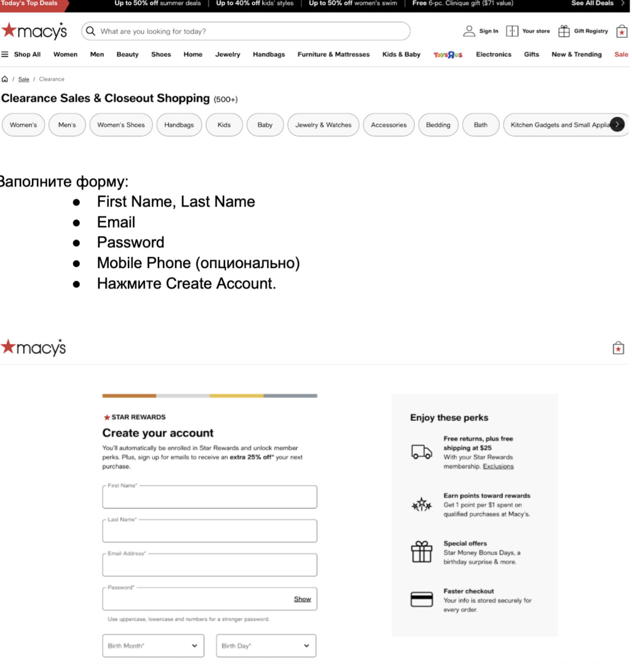 Участие в программе Star Rewards (при использовании Macy’s Credit Card)