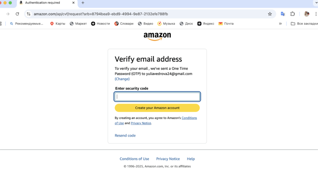 Когда код будет подтвержден, вы получите доступ к покупкам! Теперь вы полноправный зарегистрированный покупатель Amazon. Поздравляем!