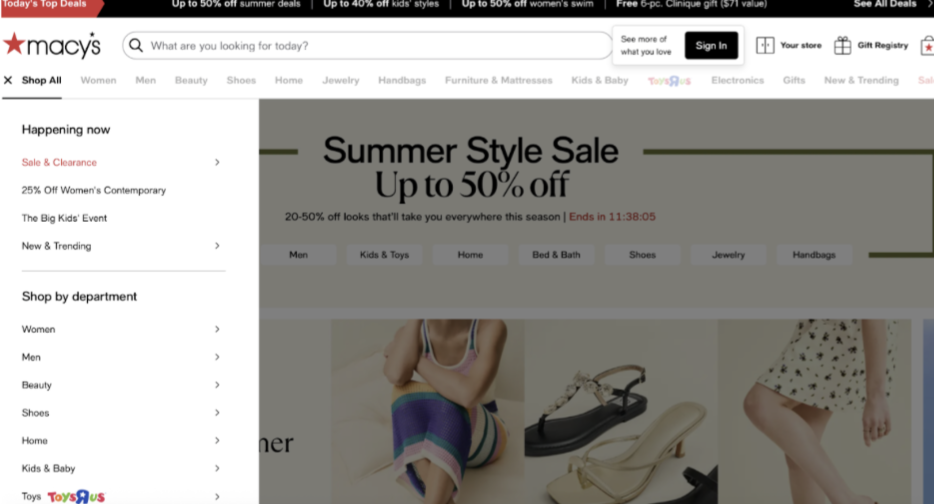 Women, Men, Juniors, Kids, Shoes, Handbags, Home и др.