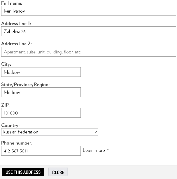 - вводите этот адрес на сайтах магазинов в качестве адреса доставки (shipping);