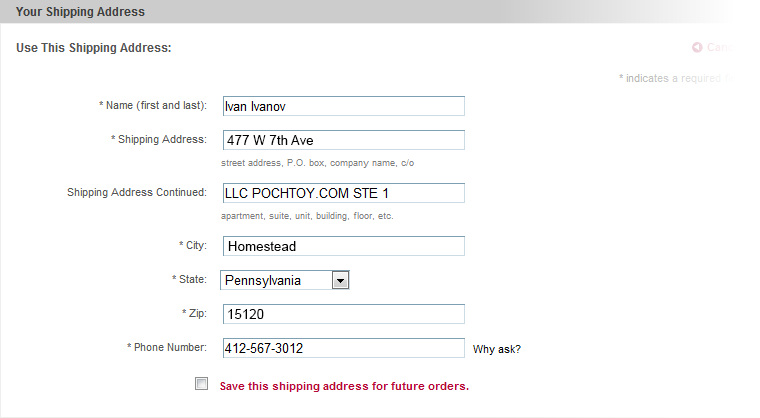 Как видите, процедура простая, никаких затрат времени и сил не требует. Вы просто заказываете посылки на американский адрес, а не на российский. А экономия получается очень солидной. Даже если вы покупаете в США один-два раза в год, хороший посредник из Америки в Россию обеспечит вам несколько десятков долларов «профита», не говоря уже о том, что во многих магазинах без американского адреса совершить покупку просто не получится.