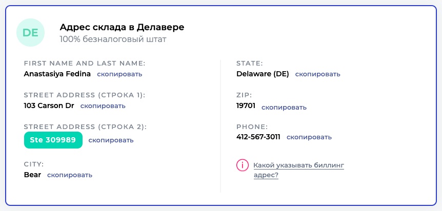 - получаете свой личный виртуальный адрес в США (бесплатно);