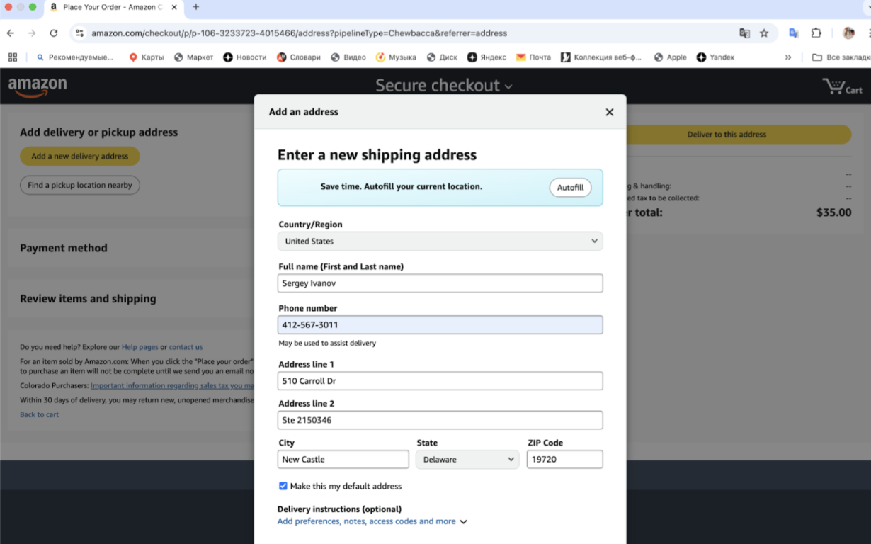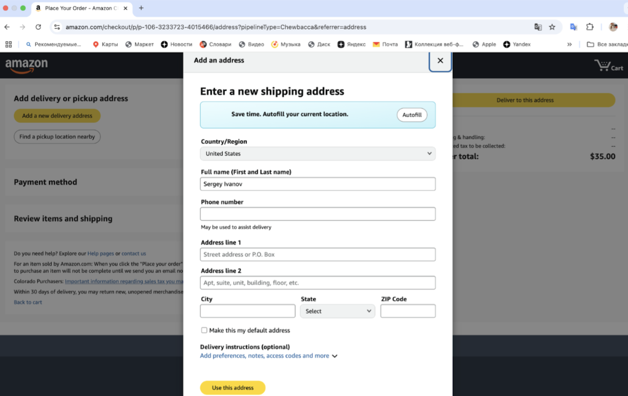 Шаг 2. Что надо для оформления заказов в магазинах США?